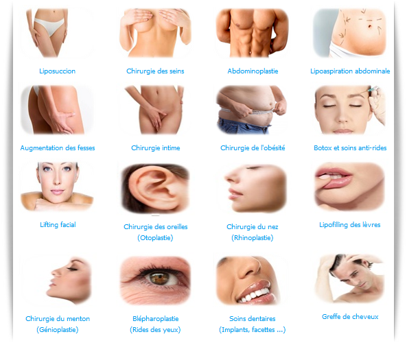 Injections de Botox : Les injections de Botox sont une procédure cosmétique populaire qui aide à réduire l'apparence des rides et des ridules. L'injection agit en paralysant temporairement les muscles de la zone traitée, donnant à la peau un aspect plus lisse. Les injections de Botox se font généralement dans le front, autour des yeux et dans les coins de la bouche. Produits de comblement cutané – Les produits de comblement cutané sont une autre procédure cosmétique populaire qui peut aider à réduire l'apparence des ridules et des rides. Contrairement aux injections de Botox, les produits de comblement cutané fonctionnent en ajoutant du volume à la zone traitée. Cela donne à la peau un aspect plus jeune et plus lisse. Les produits de comblement dermique peuvent également être utilisés pour ajouter du volume aux lèvres et aux joues. Lifting : Un lifting est une intervention chirurgicale qui améliore l'apparence de la peau lâche ou lâche sur le visage. La procédure consiste à faire des incisions le long de la racine des cheveux et à soulever la peau du visage. Cela donne au visage une apparence plus jeune en réduisant les rides et ridules. Les liftings sont souvent effectués en conjonction avec d'autres procédures, telles que la rhytidectomie (lifting du cou) ou la blépharoplastie (chirurgie des paupières). La procédure consiste à faire des incisions à l'intérieur du nez ou autour de la base du nez et à remodeler le nez à l'apparence souhaitée. La rhinoplastie peut également être pratiquée pour améliorer les difficultés respiratoires causées par des anomalies structurelles du nez . Augmentation mammaire : L' augmentation mammaire est une intervention chirurgicale qui améliore la taille et la forme de vos seins à l'aide d'implants ou de greffes de graisse. La procédure consiste à faire des incisions sous le pli mammaire, autour de l'aréole ou dans l'aisselle, et à placer des implants ou des greffes de graisse dans le tissu mammaire. L'augmentation mammaire peut également être réalisée en conjonction avec un lifting des seins pour améliorer à la fois la taille et la forme de vos seins. Abdominoplastie : L'abdominoplastie est une intervention chirurgicale qui améliore l'apparence d'un ventre mince ou affaissé. La procédure consiste à faire des incisions au-dessus des os de la hanche ou autour du nombril et à retirer l'excès de peau et de graisse de la région du ventre. Une abdominoplastie peut également être réalisée en conjonction avec une liposuccion pour aider à redéfinir le contour de votre ventre. Liposuccion : La liposuccion est une intervention chirurgicale qui améliore la forme et la taille de différentes zones de votre corps en éliminant l'excès de graisse. La procédure consiste à faire de petites incisions dans la zone à traiter, puis à utiliser un aspirateur pour aspirer la graisse. La liposuccion peut être pratiquée sur différentes parties de votre corps, notamment les cuisses, les fesses, l'abdomen, les bras, le cou et le menton.